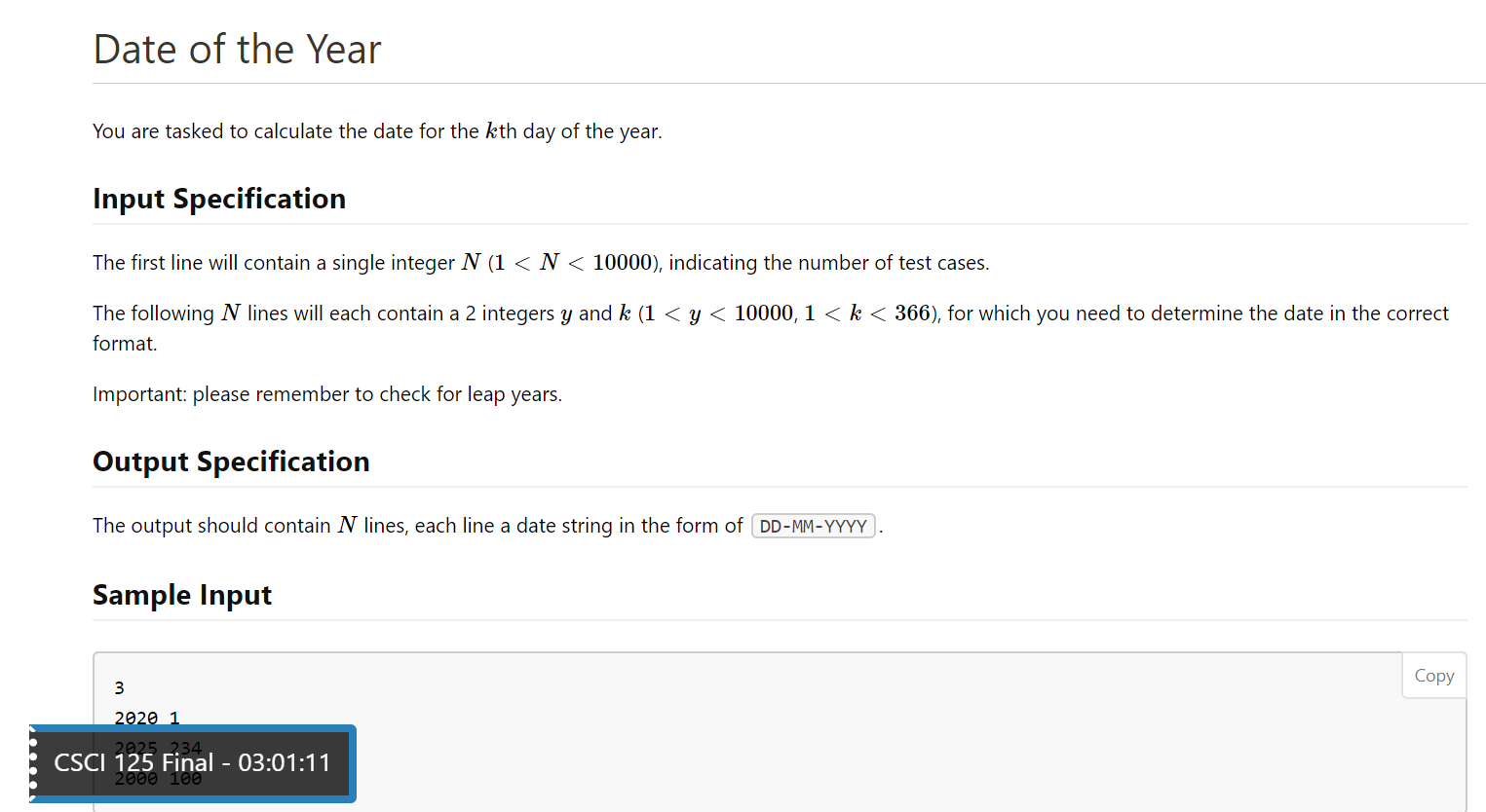 Solved Date of the Year You are tasked to calculate the date | Chegg.com