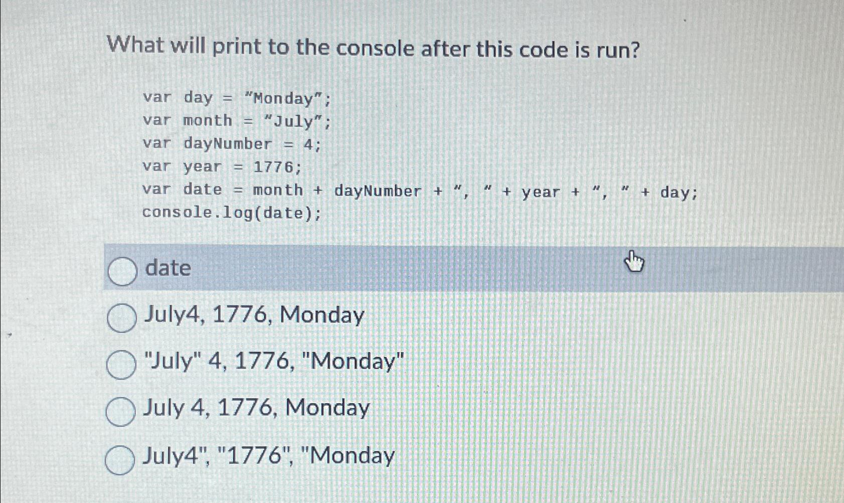 Solved What will print to the console after this code is | Chegg.com
