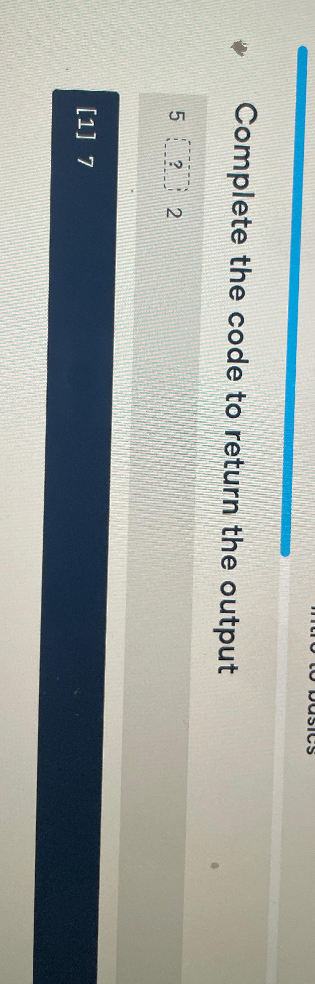 Solved Complete the code to return the output[1] 7 | Chegg.com