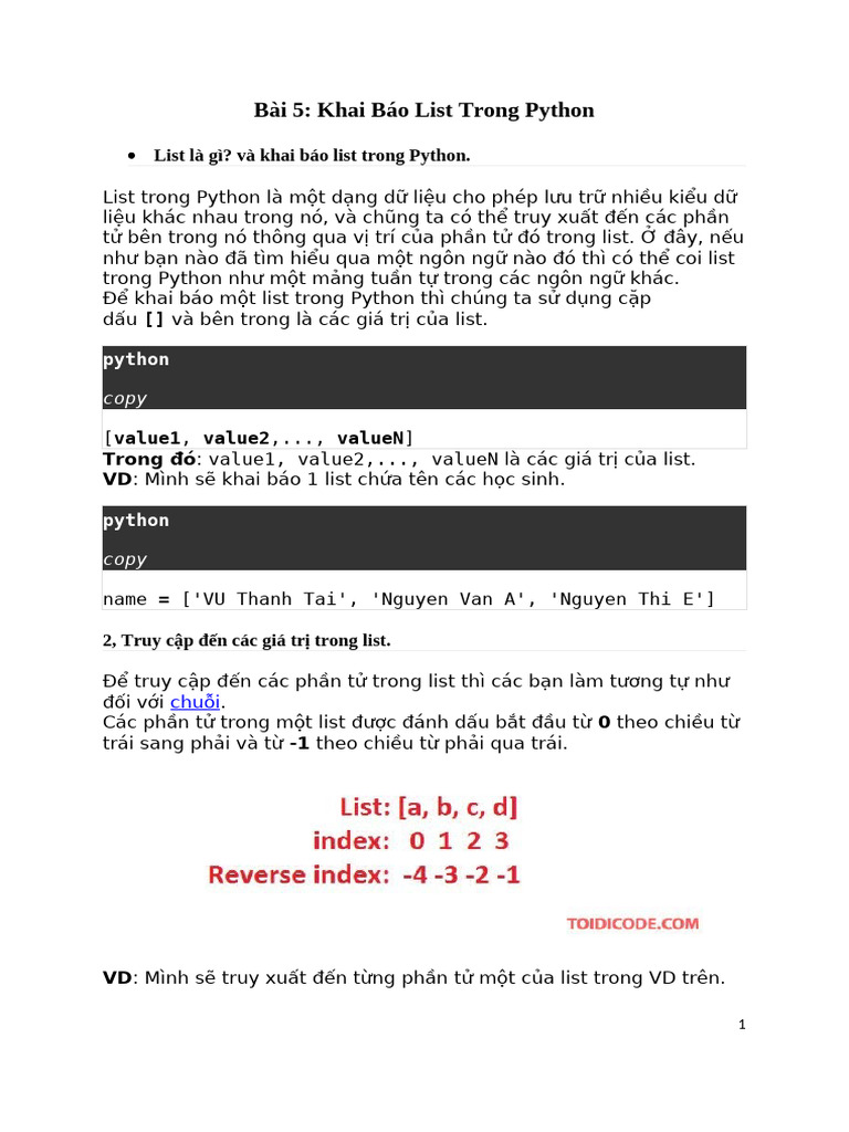 Bài 5 Khai Báo List Trong Python | PDF