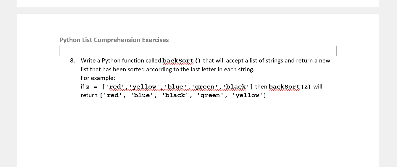 Based on this image's title: “Solved Python List Comprehension Exercises Complete these | Chegg.com”