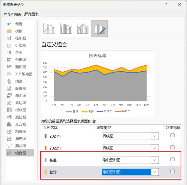 excel中如何为折线图线条之间的区域填充颜色? - 趣帮office教程网