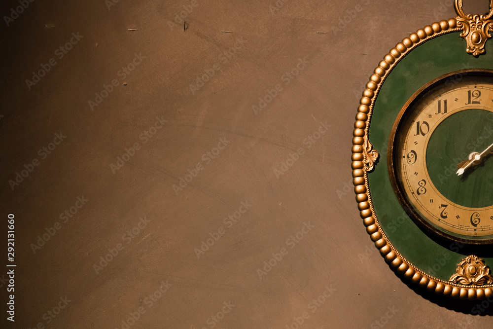 Gold vintage clock with arabic numbers. Beautiful green frame clock ...