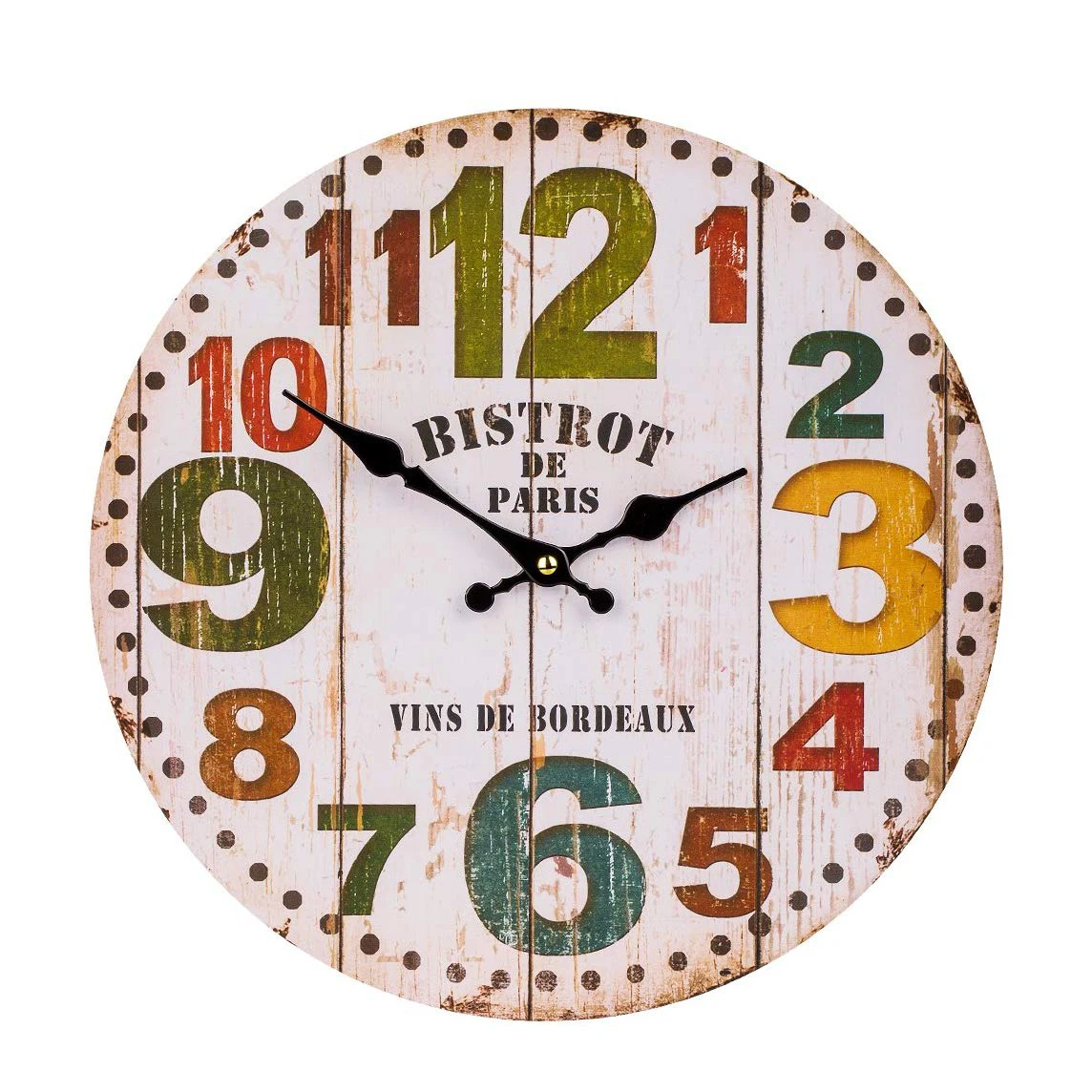 LOHAS Home Silent Vintage Design Wooden Round Wall Clock, Arabic ...