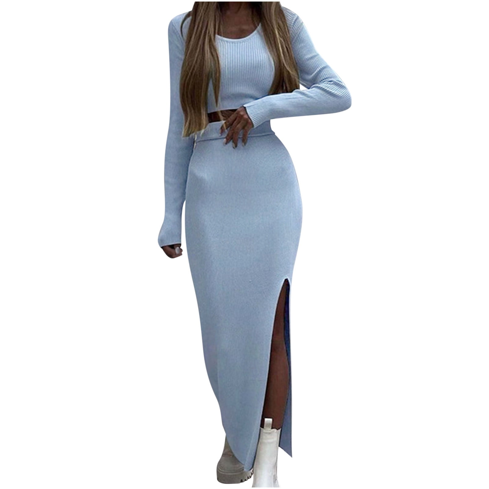 ZFUNKQ Knit Sets for Women 2 Piece Outfit Long Sleeve Solid Color ...
