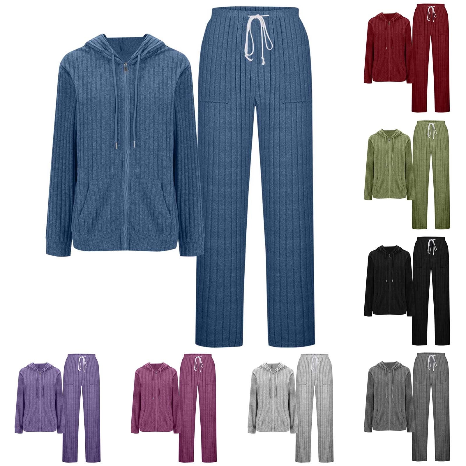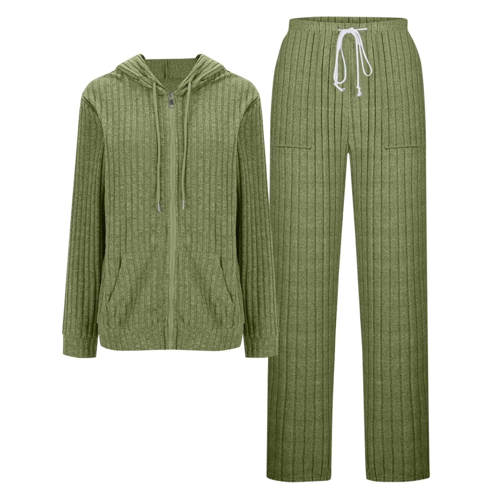 Womens 2 Piece Lounge Sets Matching Outfits Knit Long Sleeve Zip ...