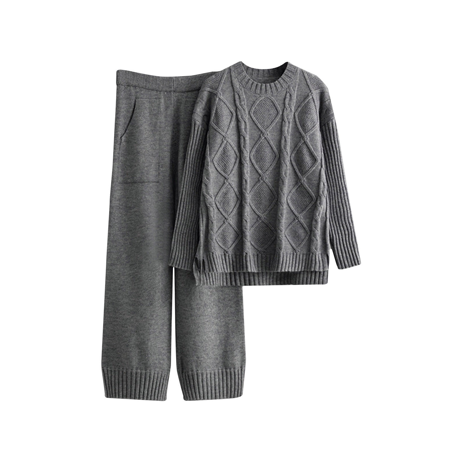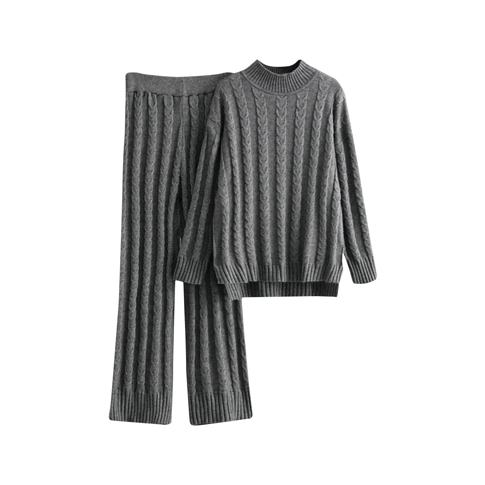 2-Piece Outfits for Women Cable Knit Sweaters Set Soft Comfy Solid Off ...