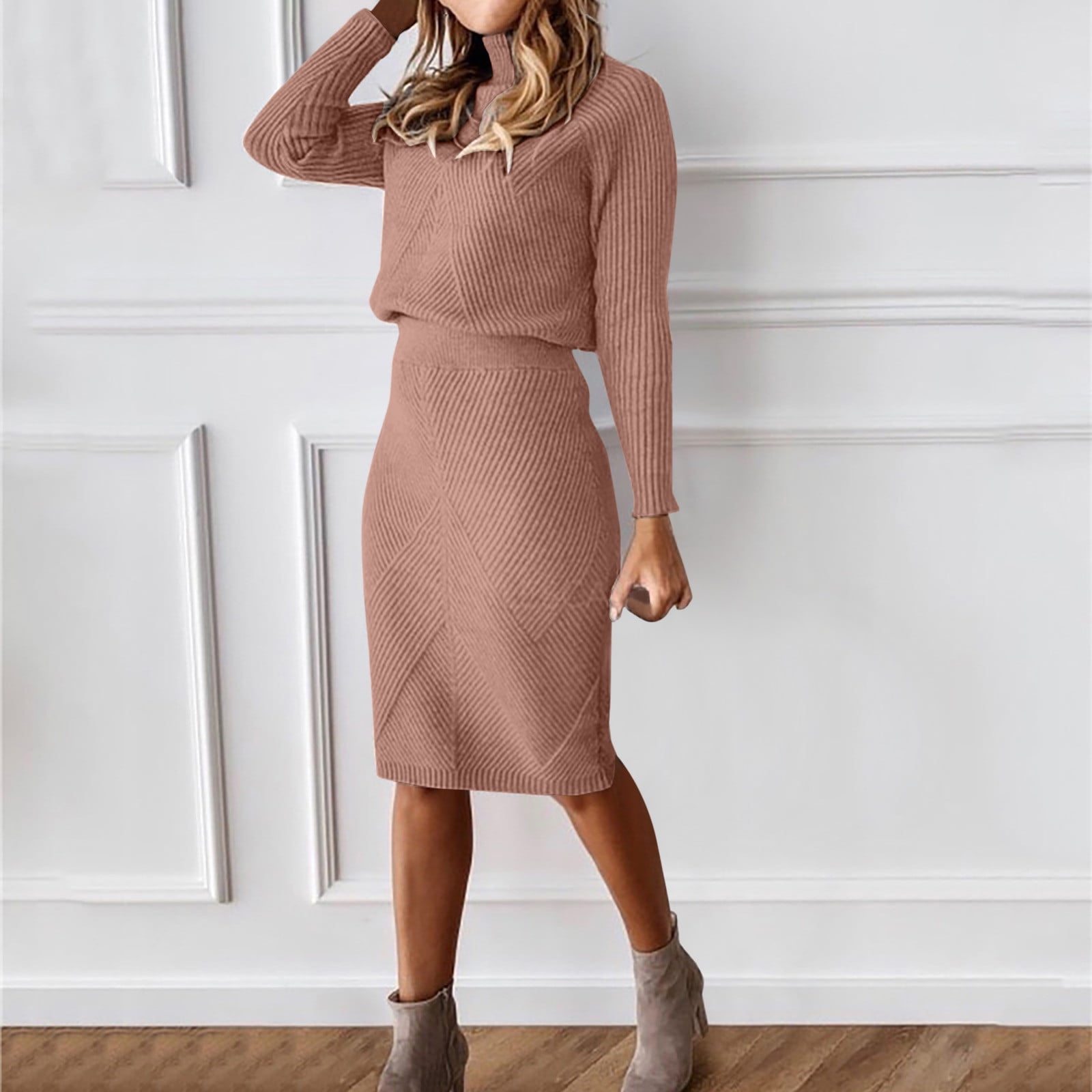 Amazon.com: Ezbelle Women's Long Sleeve Sweater Dresses 2 Piece Outfits ...