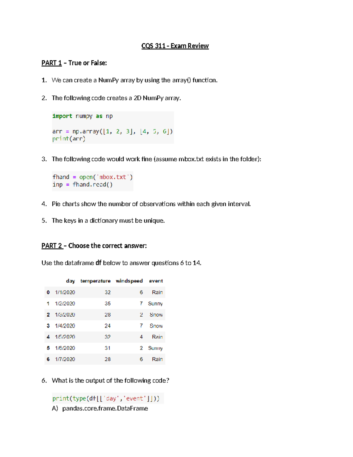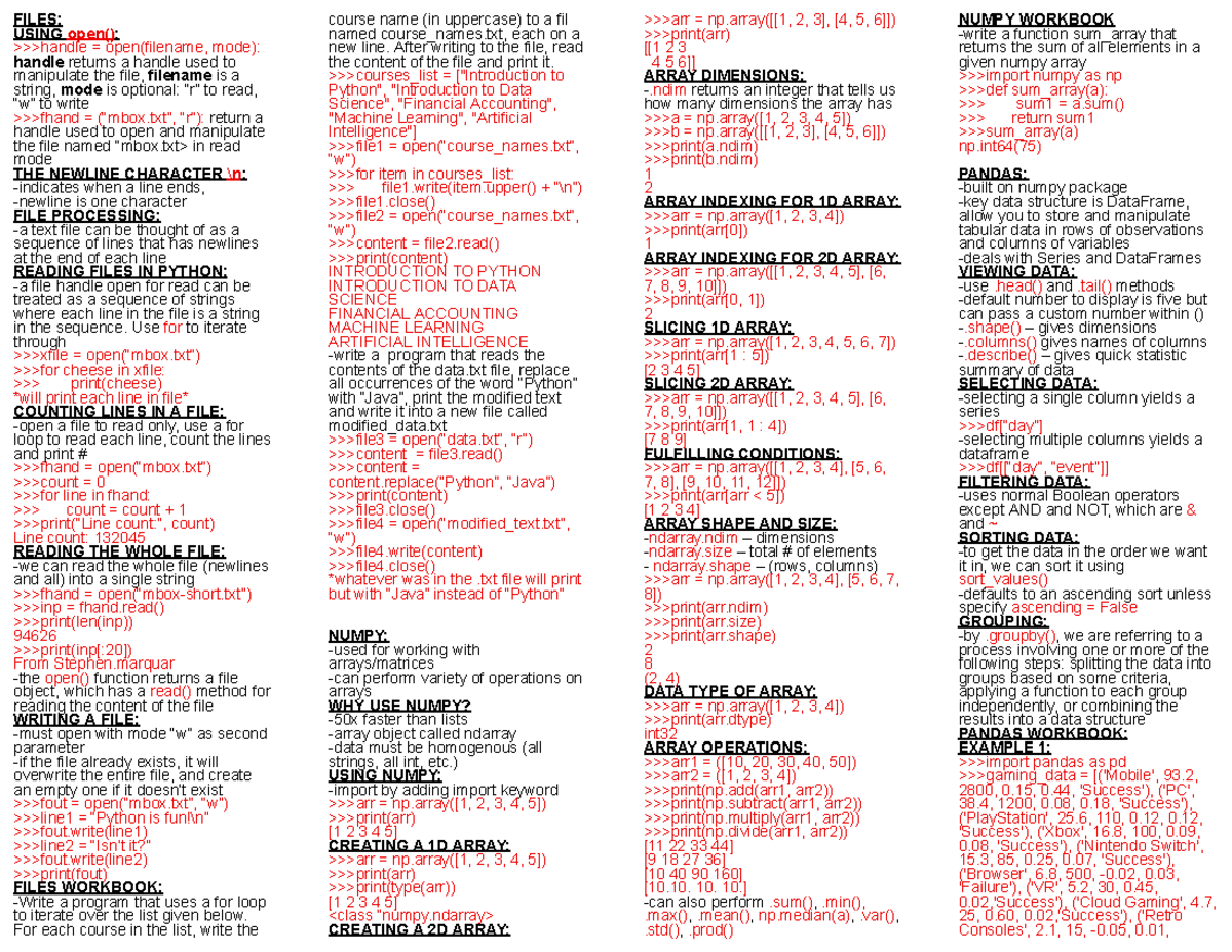 CQS311 Final Exam Study Guide: File Handling, NumPy & Pandas - Studocu