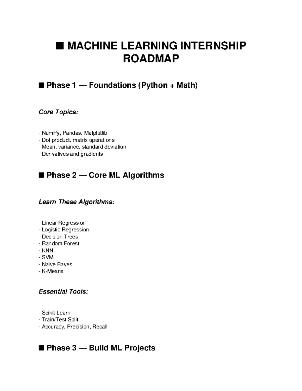 Styled ML Intern Roadmap: Foundations to Advanced Projects - Studocu