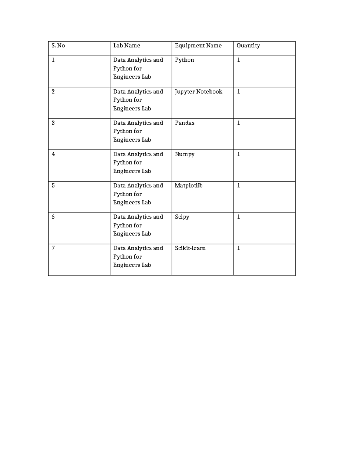 Data analytics python lab equipment - S. No Lab Name Equipment Name ...