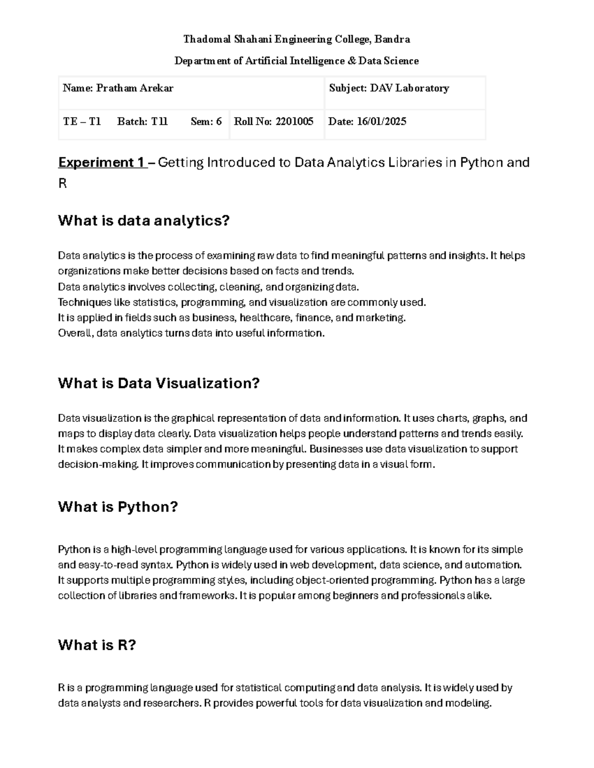 DAV Lab Sem 6: Intro to Data Analytics Libraries in Python & R - Studocu