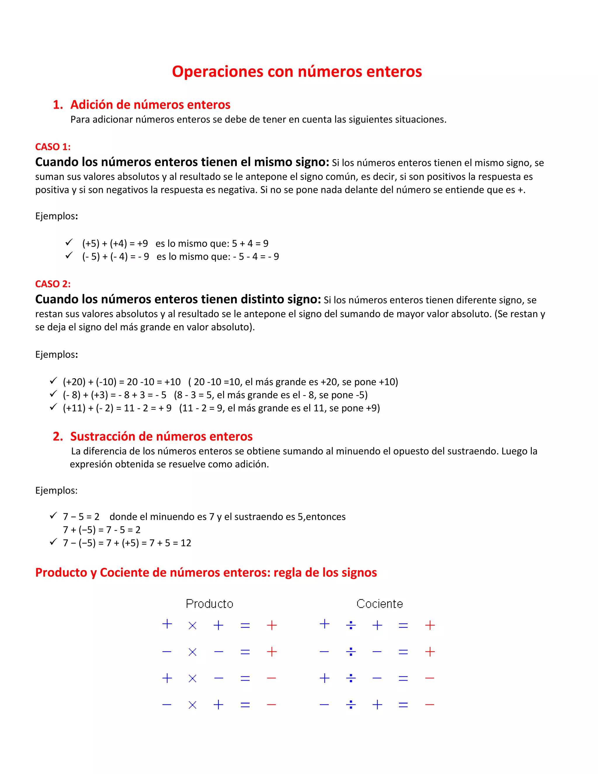 1. Mediante el uso de la suma y resta de números enteros, sumando filas ...