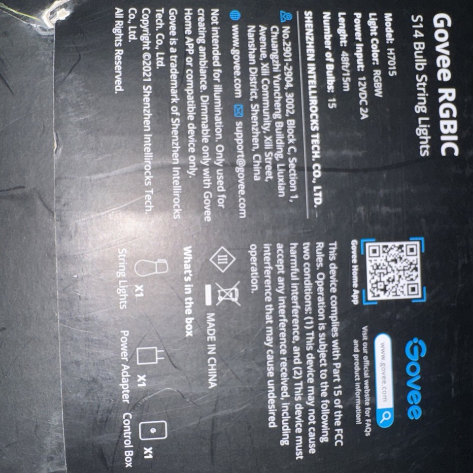 Govee RGBIC S14 Bulb String Lights 48ft Waterproof Model H7015 - New ...