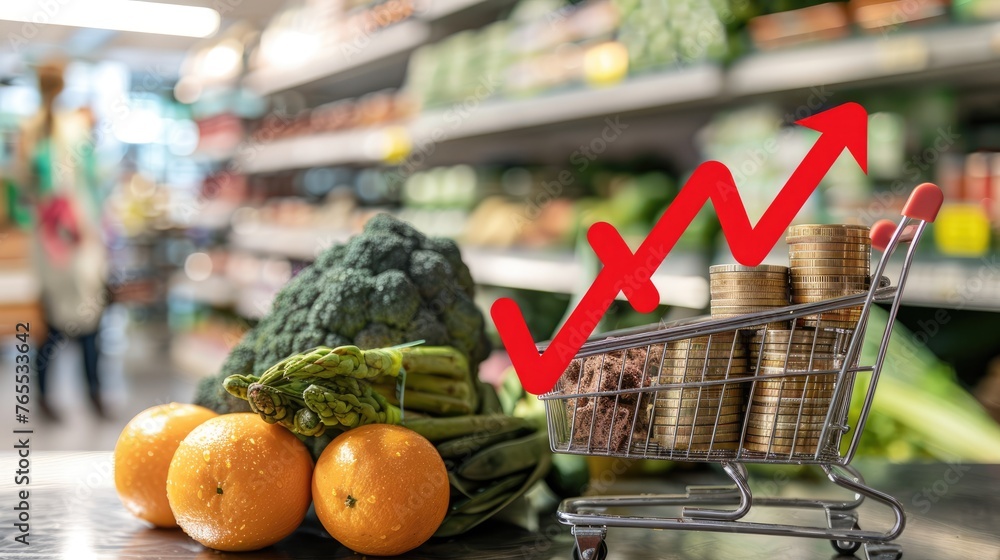 An image depicting the concept of rising food costs, with a shopping ...