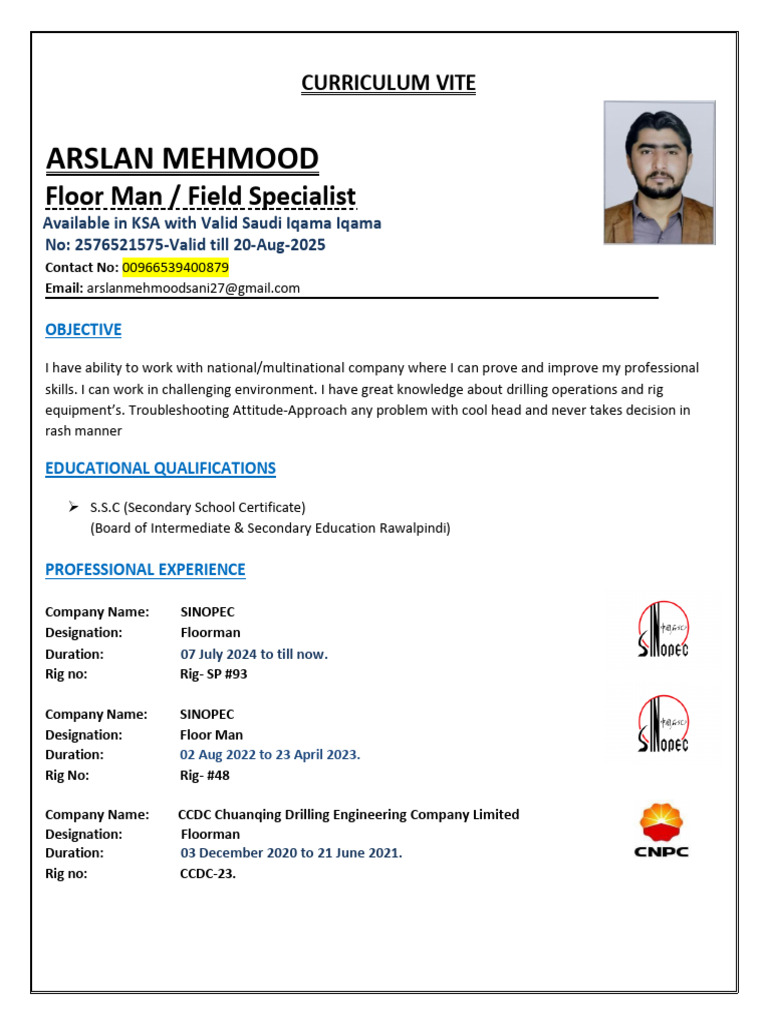 Arslan Mehmood Floor Man C.V | PDF