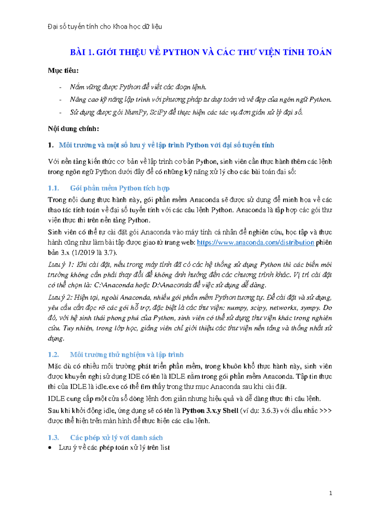 Lab Manual Eng Math 1 - I. Introduction to PYTHON - Studocu