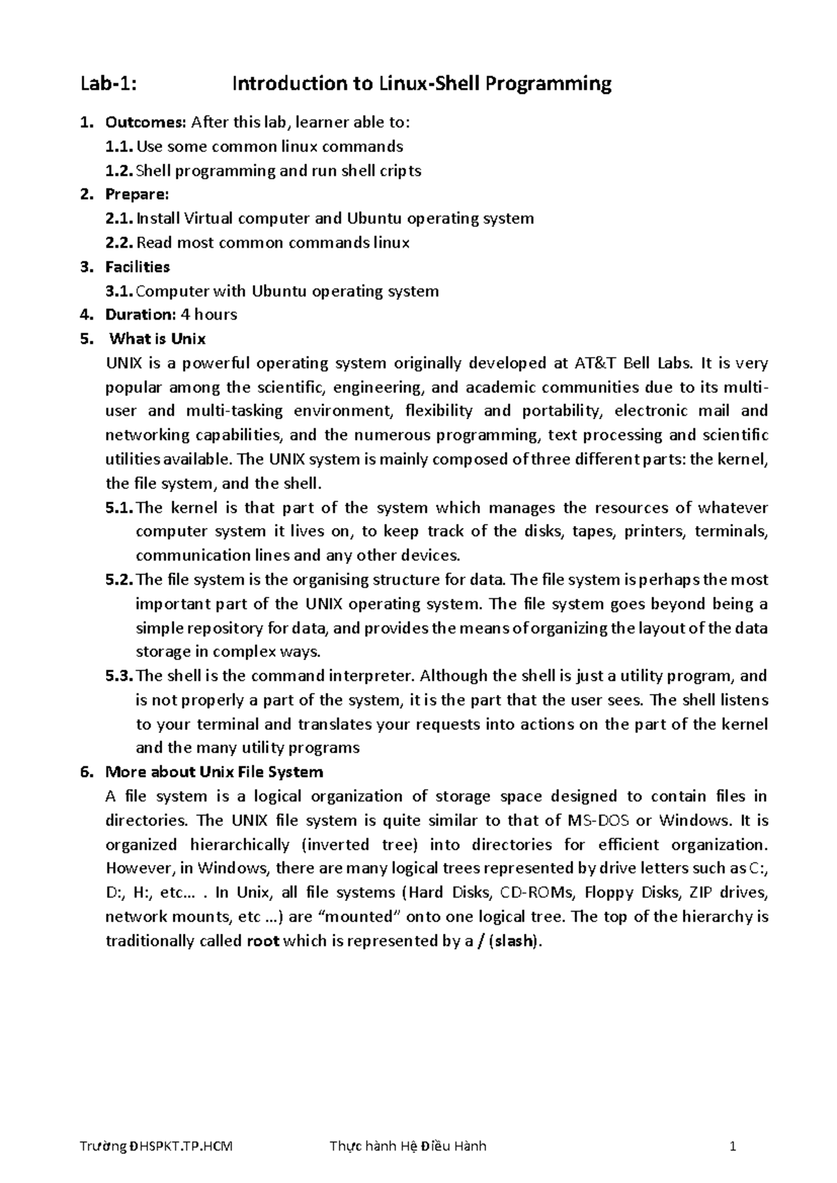 Lab 1: Introduction to Unix Commands and Shell Programming (CS101 ...