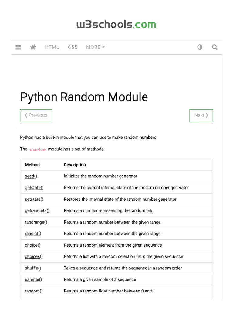 Python Random Module: W3schools | PDF | Bootstrap (Front End Framework ...