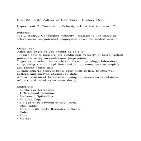 Bio 102 – City College of New York – Biology Dept.Experiment 2 | DOCX