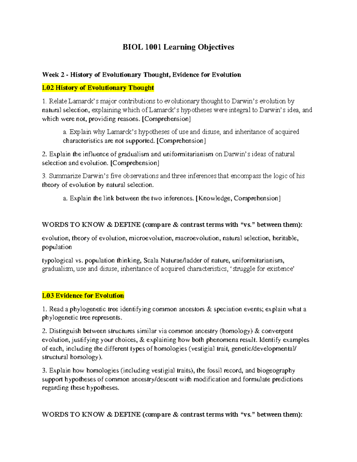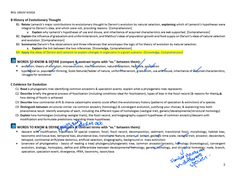 BIOL 1001 W2024 Module 2 LOs (Updated Jan. 19) | PDF | Evolution ...