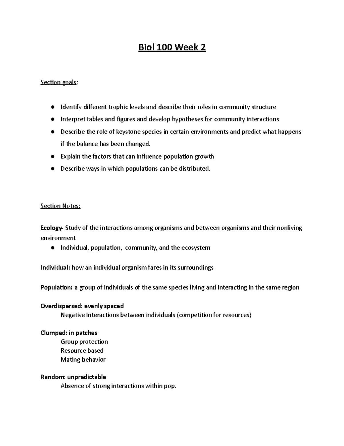 Biol 100 week 2 lecture - Dr. Marriage - Biol 100 Week 2 Section goals ...