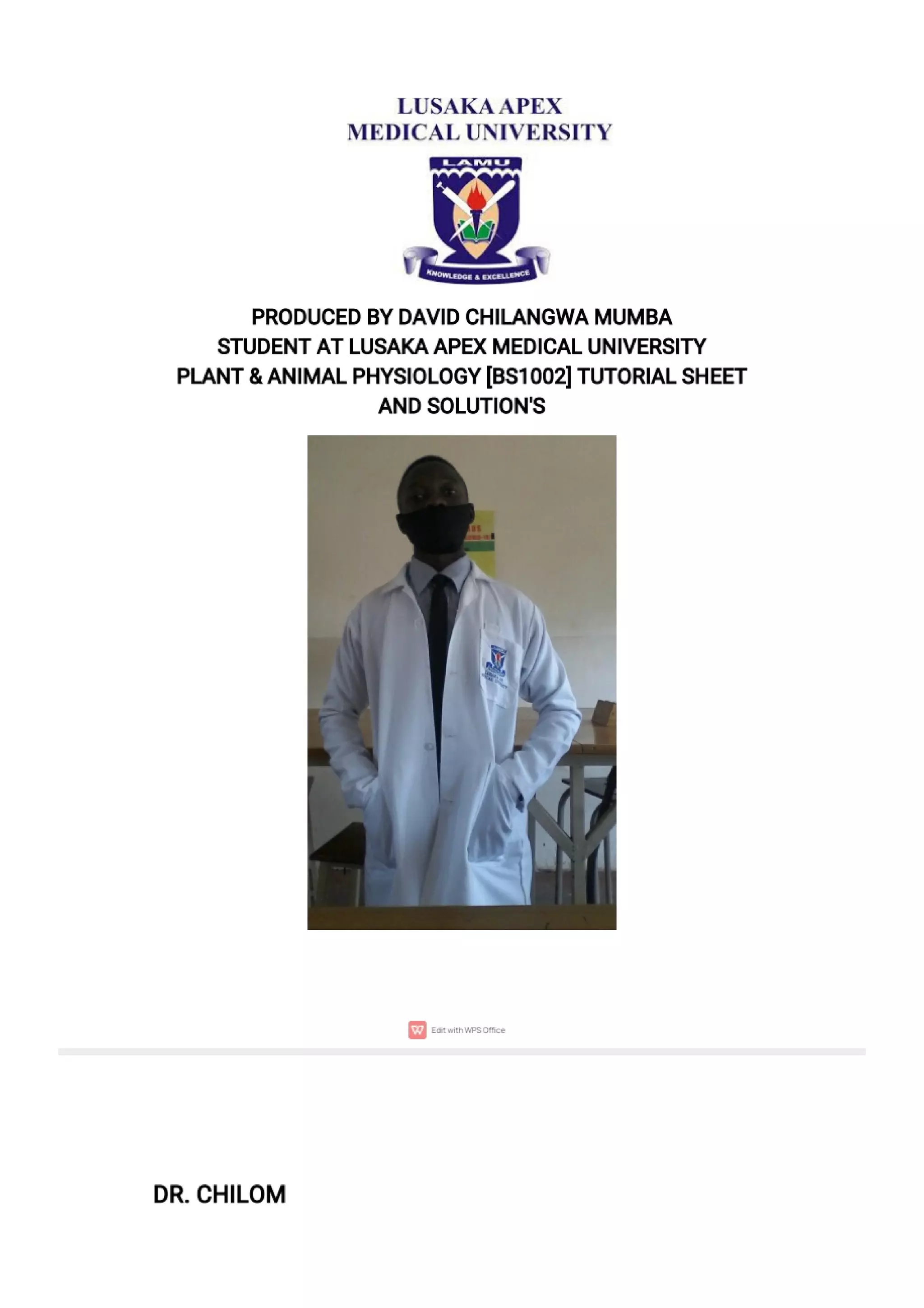 PLANT &ANIMAL PHYSIOLOGY 1002 TUTORIAL SHEET AND SOLUTION'S ...
