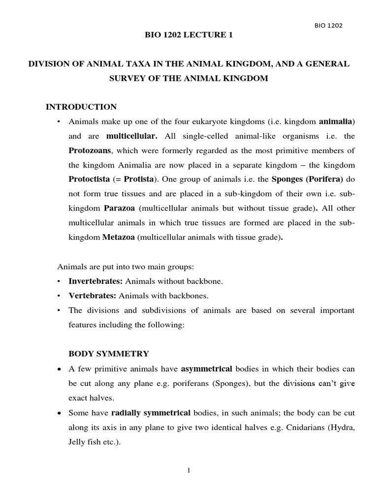 Overview of Animal Kingdom Taxonomy | PDF | Protozoa | Organisms