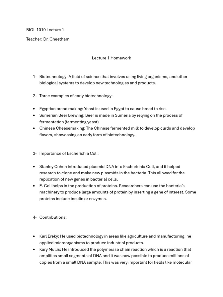BIOL 1010 Lecture 1 | PDF | Molecular Cloning | Biotechnology