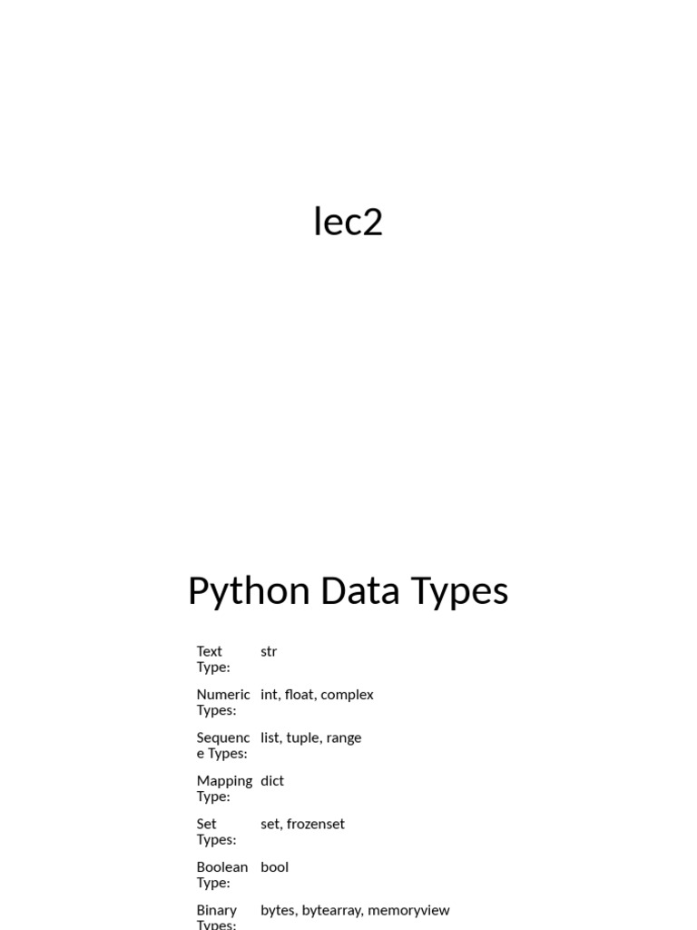 Lecture2 Python | PDF | Variable (Computer Science) | Data Type