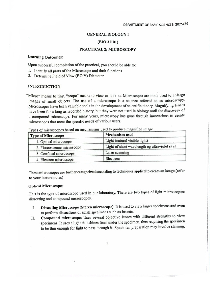 SOLUTION: Biol 100 module 2 lab 2 document microscopes and cells ...