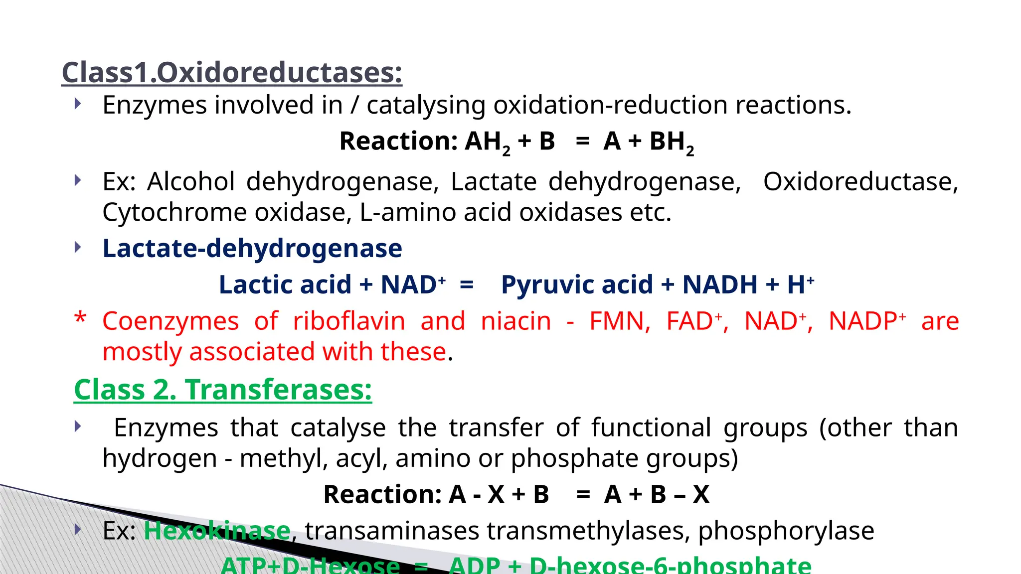 Classification of Enzymes 1 Oxidoreductases 2 Transferases 3