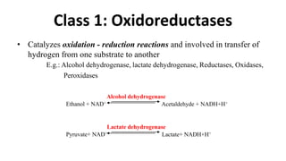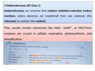 Вiochemistry of enzymes Enzyme Classifcation 1 Oxidoreductases