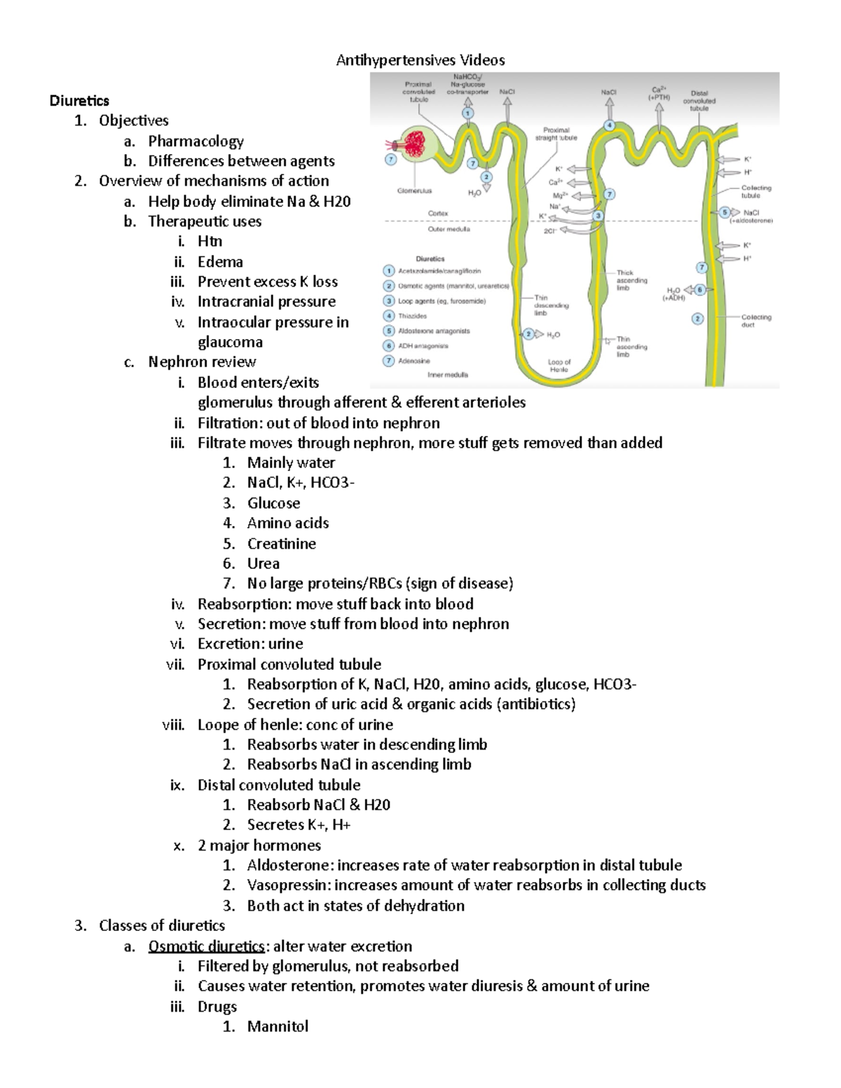 Antihypertensives Notes - Antihypertensives Videos Diuretics 1 ...