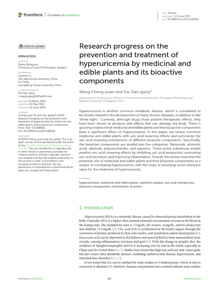 Research Progress On The Prevention and Treatment of Hyperuricemia by ...