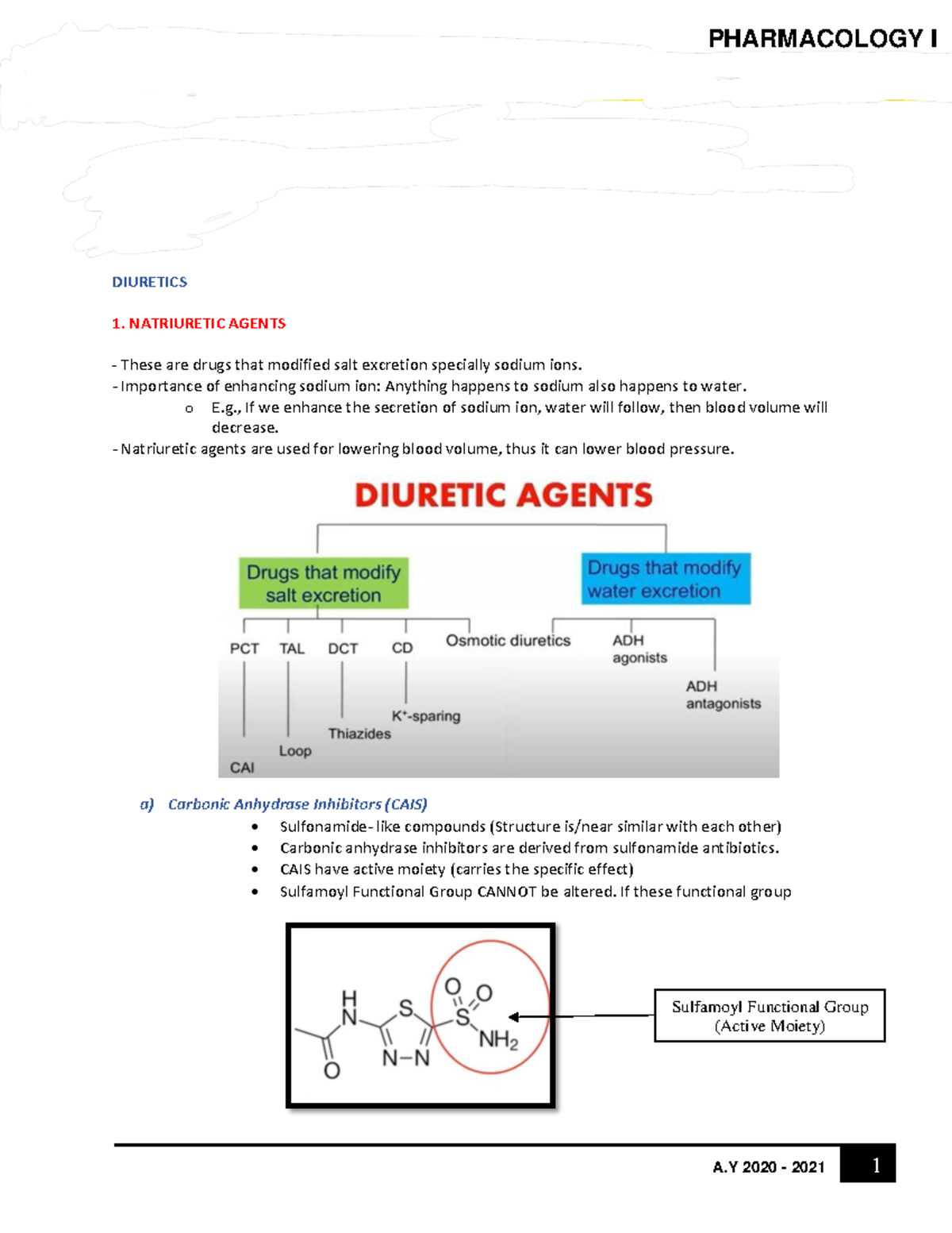 Pharmacology Notes 5 - Pharmacology Diuretic Drugs Drugs that ...