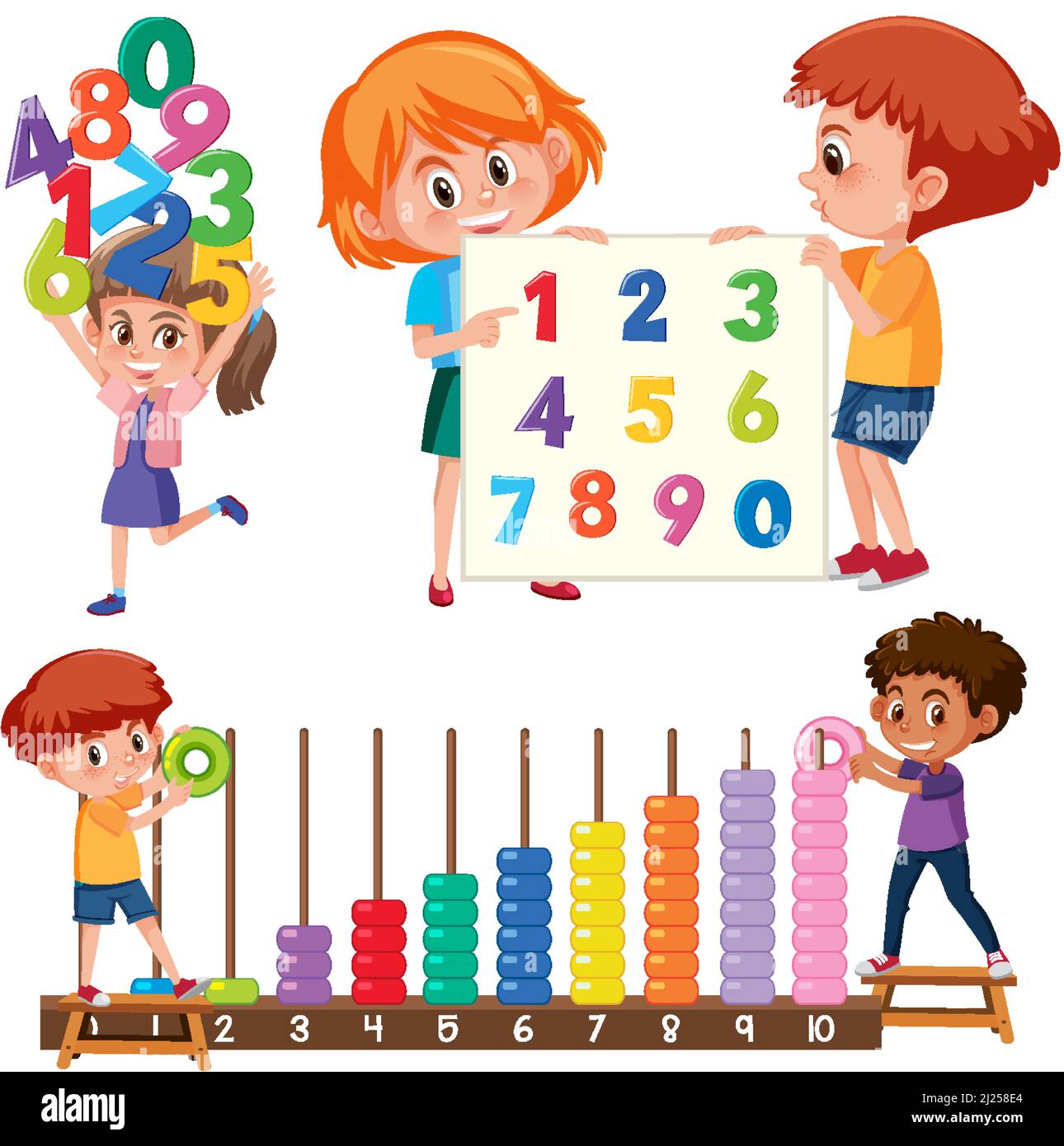 Math classroom objects with supplies and students 7107055 Vector Art at ...