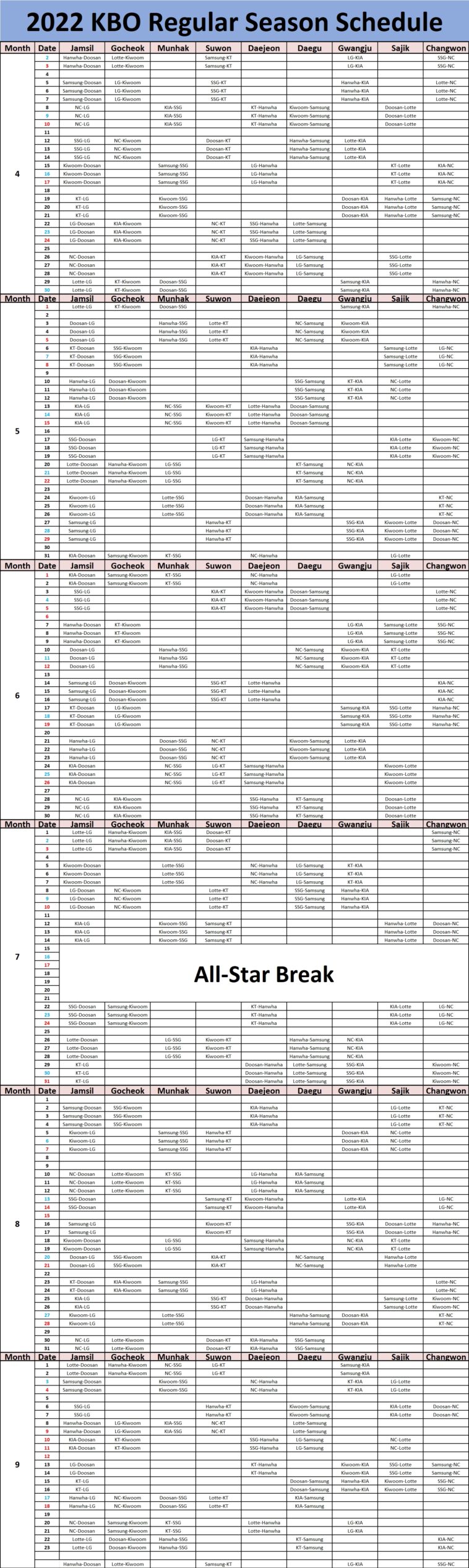 2022 Shinhan Bank SOL KBO League Regular Season League Table : r/KBO