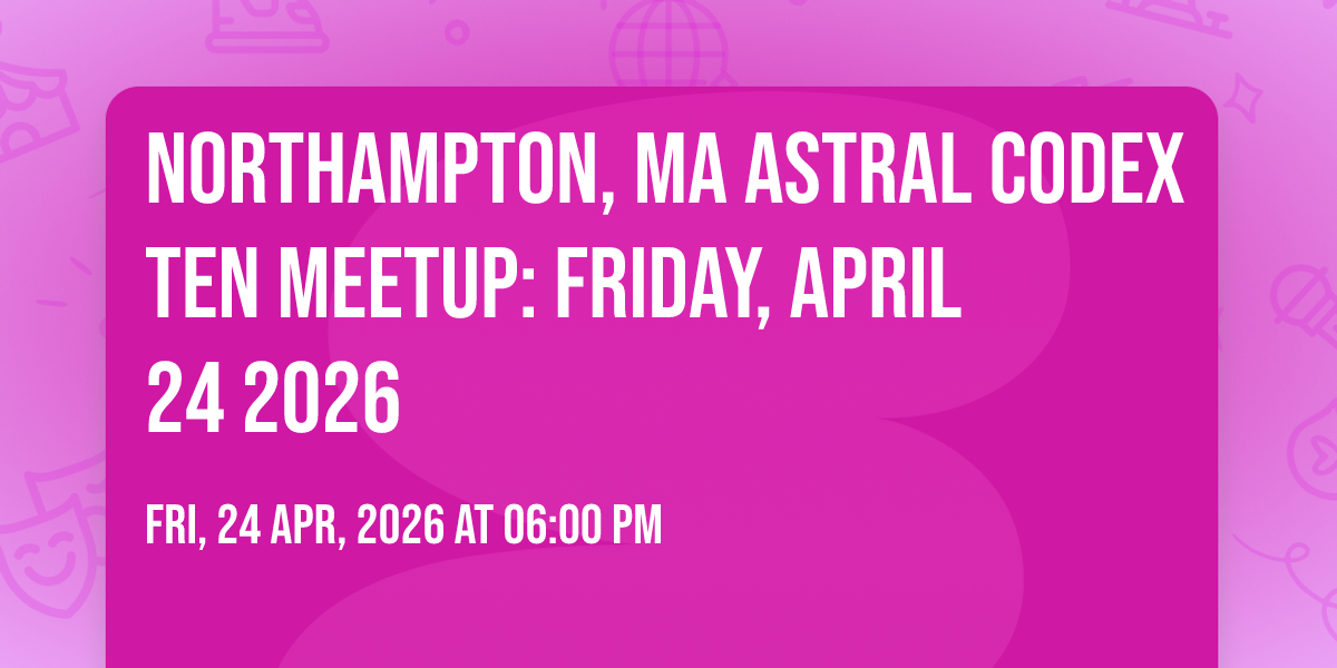 Northampton, MA Astral Codex Ten Meetup: Friday, April 24 2026 at 100 ...