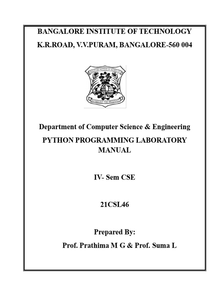 Python Programming Lab Manual 21CSL46 | PDF | Engineering | Computer ...