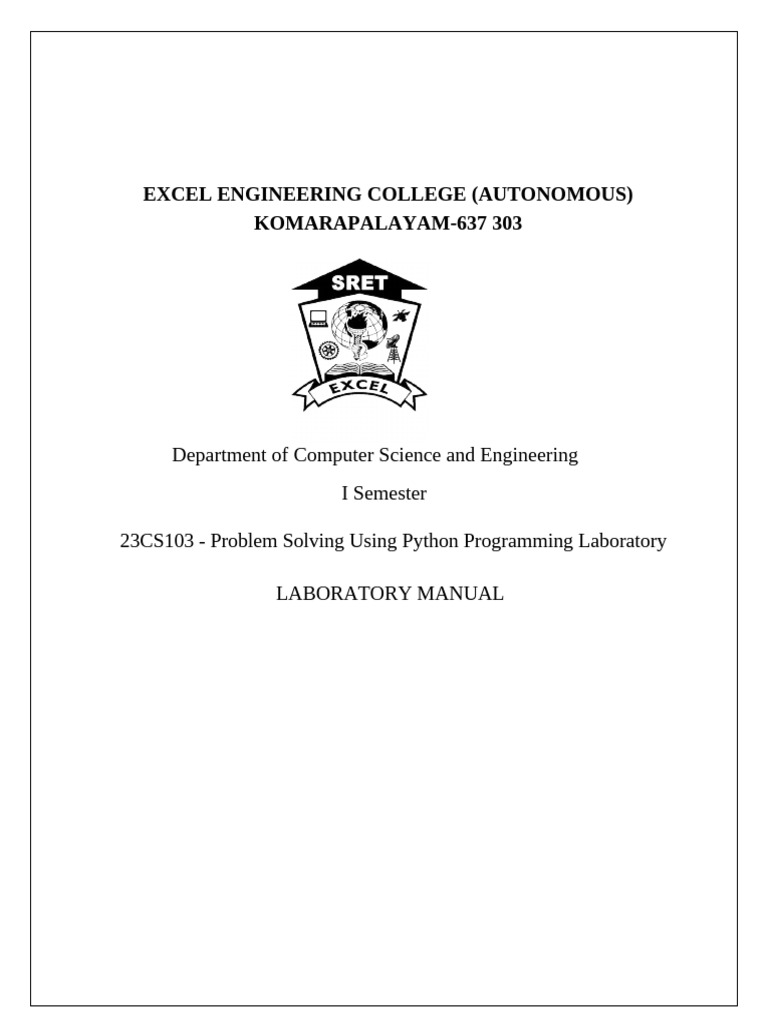 Python Programming Lab Manual (CSE 101) - Skill Enhancement Course ...