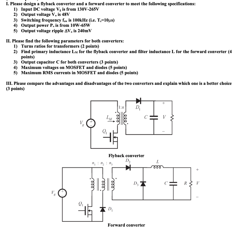 Solved I. Please design a flyback converter and a forward | Chegg.com