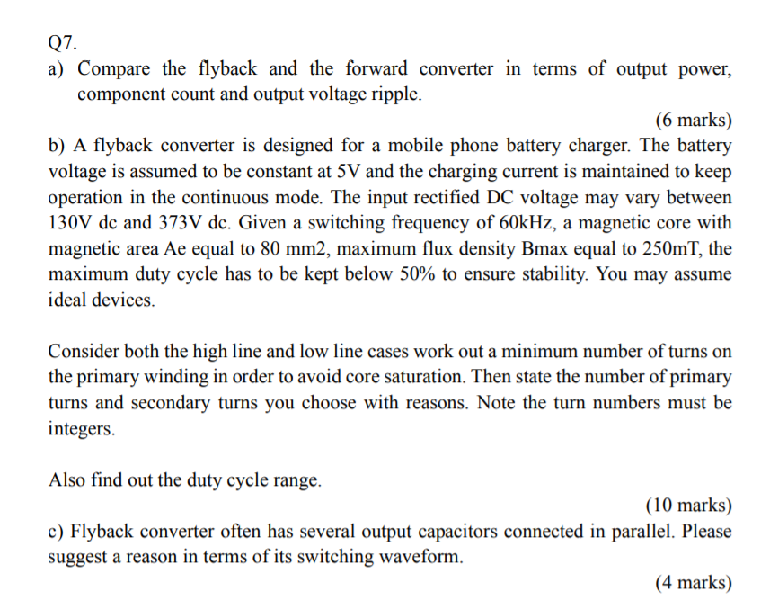 Solved Q7. a) Compare the flyback and the forward converter | Chegg.com