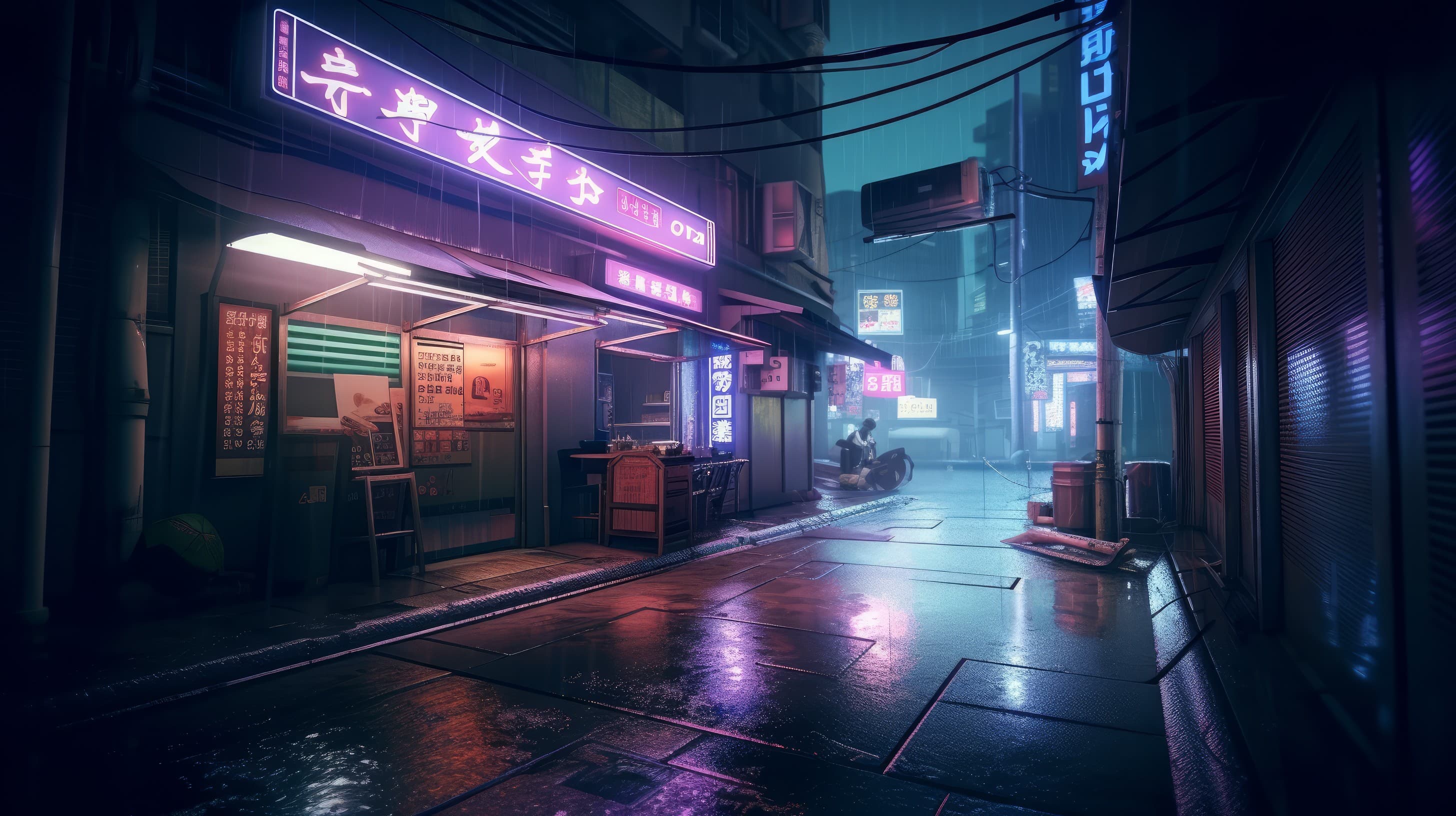 digital art, futuristic city, neon lights, rain, cyberpunk, 1080P ...