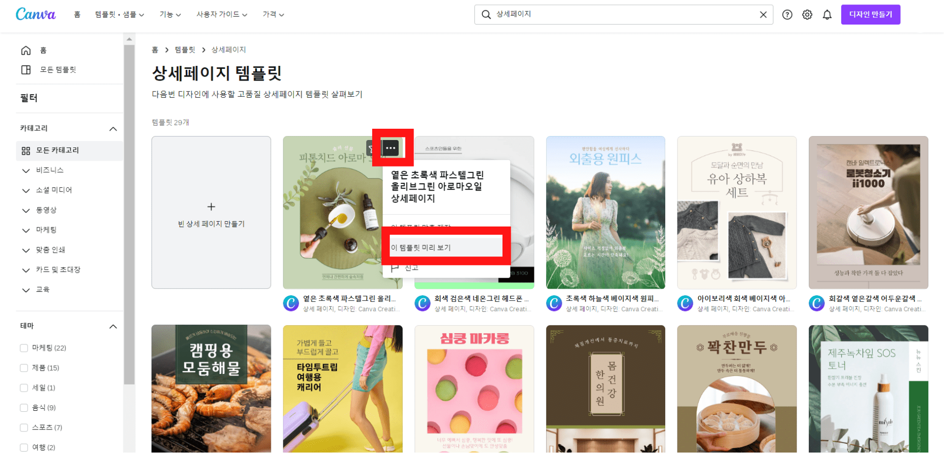 Canva(캔바)로 잘 팔리는 상세페이지 디자인하기! 주제별 무료 상세페이지 템플릿 모음!
