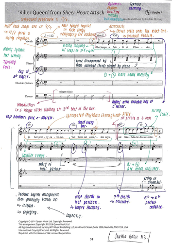 Edexcel GCSE Music - Annotated Score of 'Killer Queen' By Queen ...