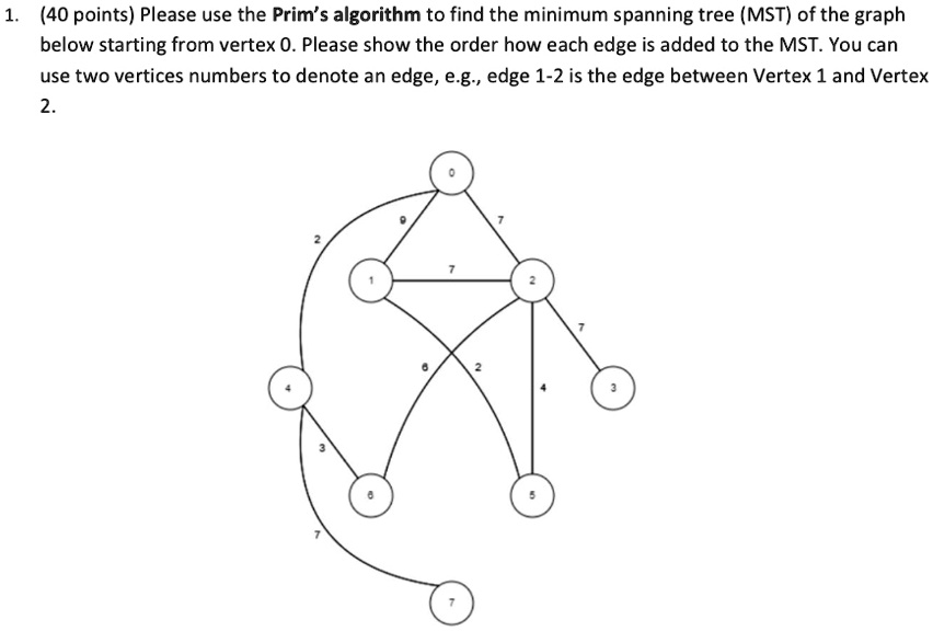 SOLVED: 1. Find the minimum spanning tree using the Dijkstra-Prim ...