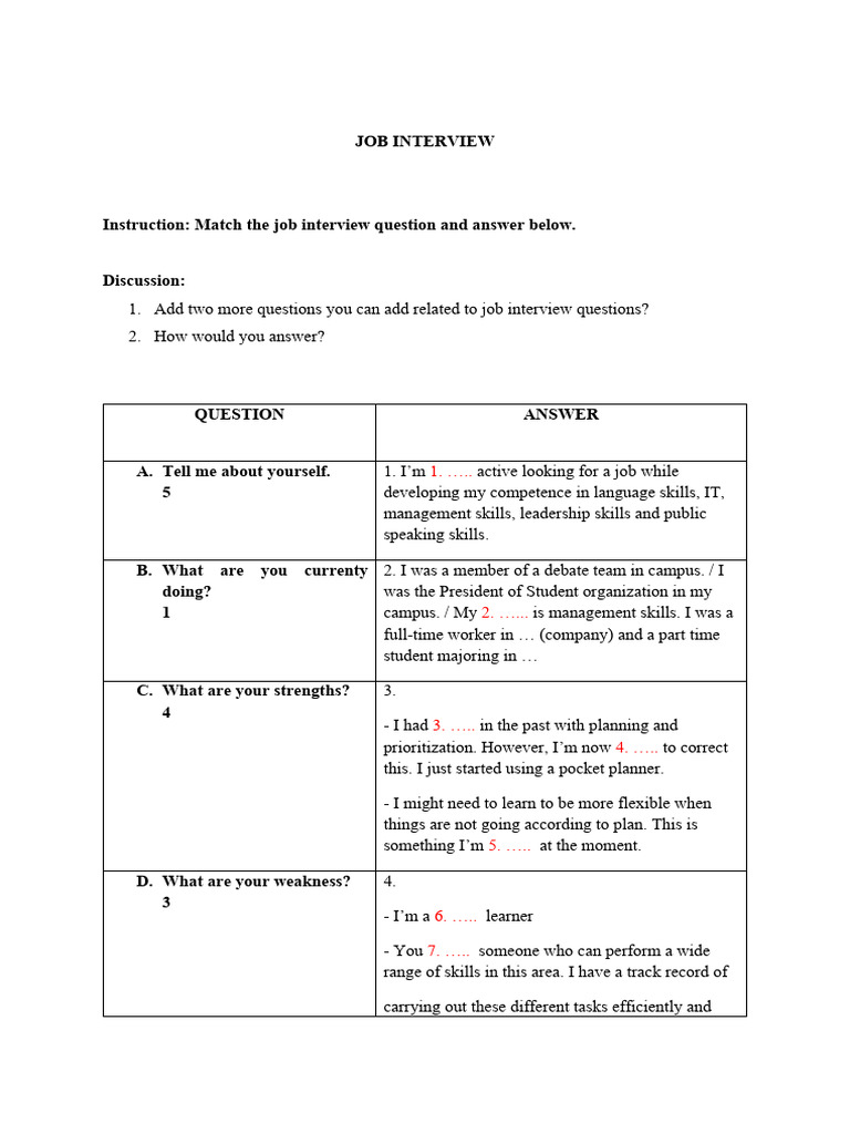10 Questions and Answers in A Job Interview | PDF | Job Interview ...