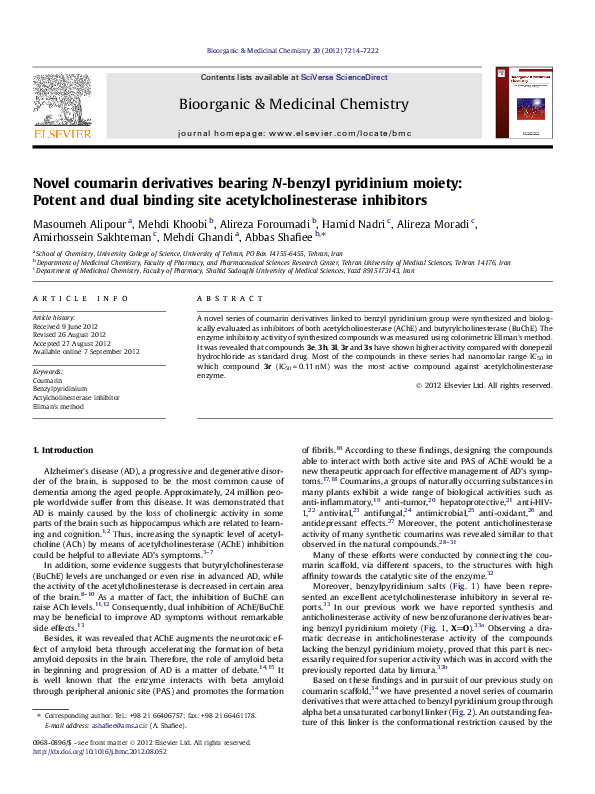 (PDF) Novel Coumarin Derivatives as Potent Acetylcholinesterase ...