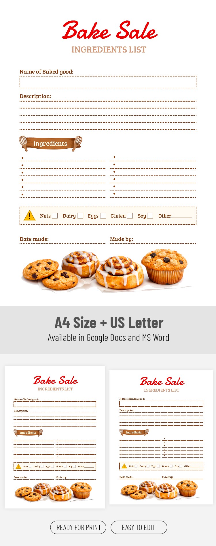 Free Bake Sale Ingredients List Template in Google Docs and Microsoft ...